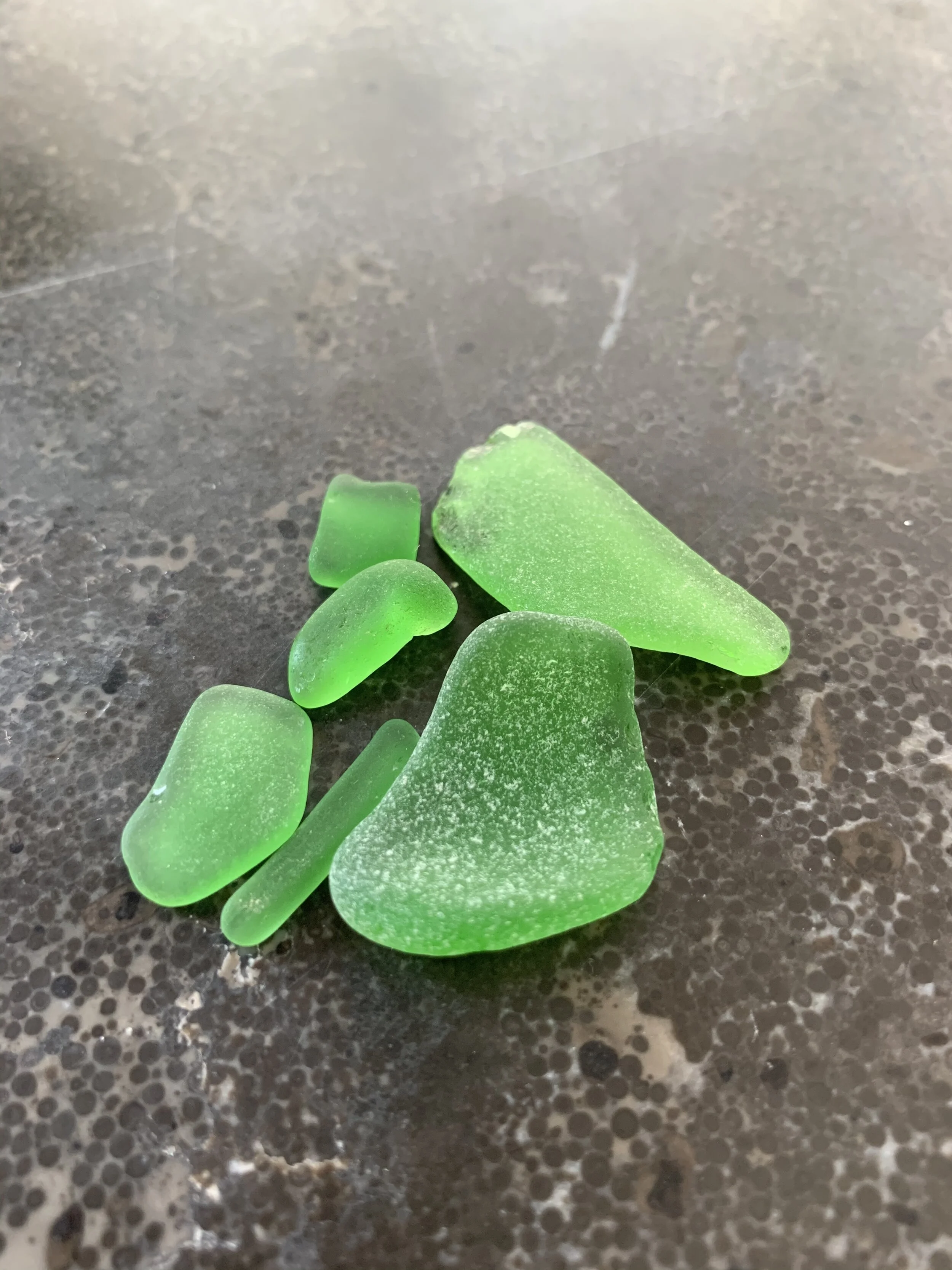 Looking for sea glass was something she did with her mother when she was a little girl. They would walk for hours and she would try to convince her mother a piece was ready when it wasn’t. “Give the sea time,” her mother would repeat. “Give the sea time.”